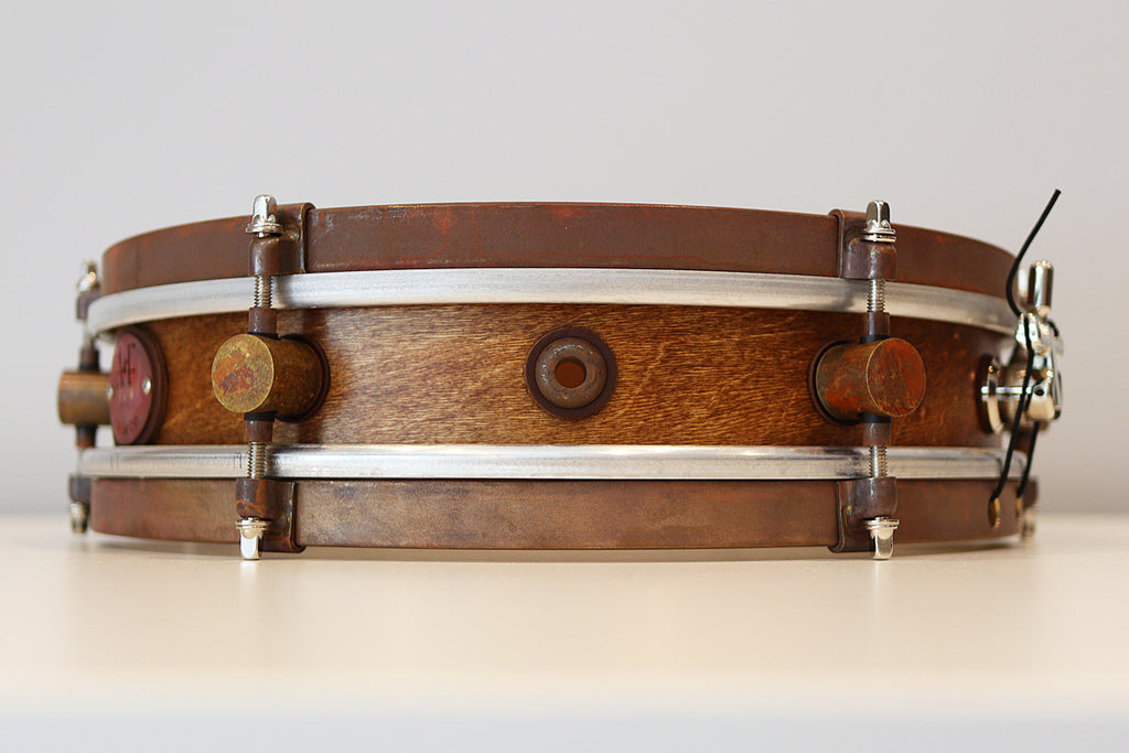 "The Wood Rude Boy Snares feature our exclusive 7-ply Maple/Poplar (or limited edition Teak/Maple) wood shells with our patented raw brass hardware and hand rolled and welded raw brass hoops!