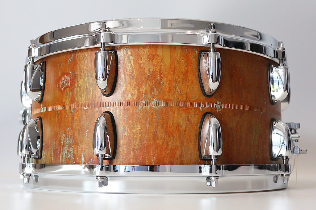 Sonically between a brass and copper shell, bronze is a very musical metal, as shown by its use in cymbal making for years. Bronze snares are somewhat darker than their brass counterparts, but still have a clear, defined high end and great stick articulation. The 1mm aged patina Bronze shell also comes with our Micro-Sensitive Throw-Off, 42-Strand snare wires, diecast hoops, and a ‘Snap-In’ key holder.